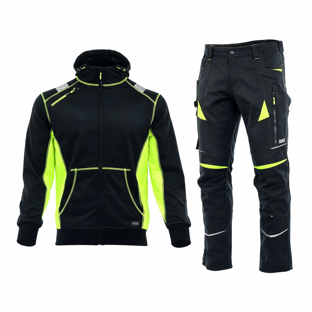 Karcsúsított szabás, rugalmas, funkcionális kialakítás. A vállakon, jólláthatósági modullal, és 5 cm széles szegmentált fényvisszaverő szalagokkal.