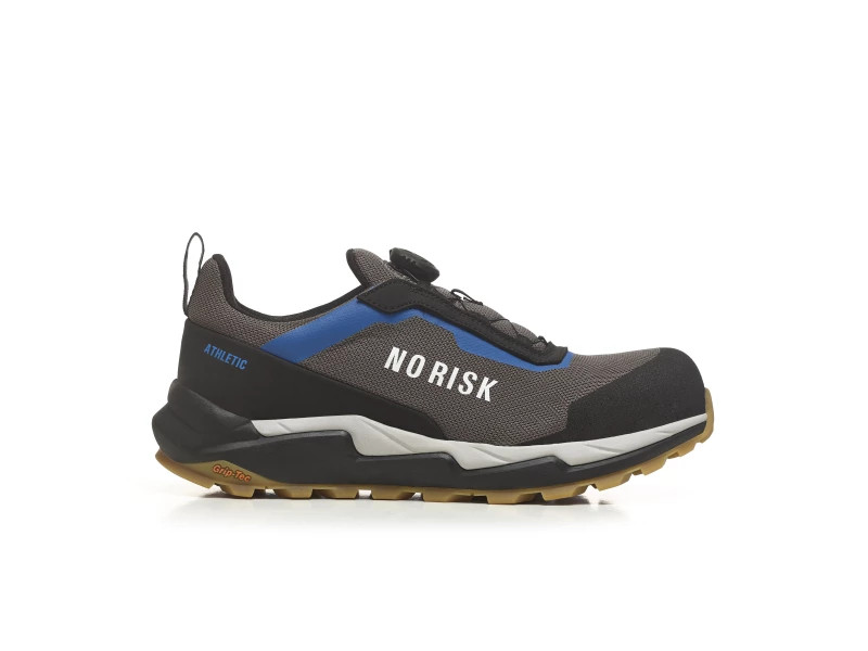 A NO RISK ATHLETIC LOW FLS szürke-kék védőcipő a MOZ fűzőrendszerrel rendelkezik, amely lehetővé teszi a gyors és kényelmes fel- és levételt. Védelem: S3L HI CI HRO FO SR. Felsőrész: vízlepergető textil. Talp: EVA hab és gumi kombinációja, hőálló (HRO), csúszásmentes (SR), olajálló (FO). Tulajdonságok: kompozit orrmerevítő, kevlár Talplemez, antisztatikus (A), energiaelnyelő sarok (E), hideg- és hőszigetelés (CI, HI). Szín: szürke-kék.