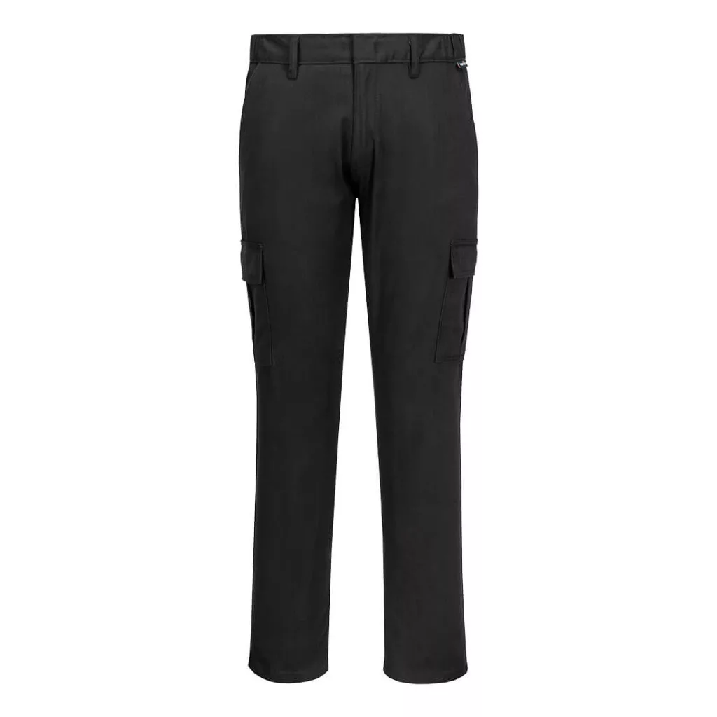 Ez a slim fit stretch nadrág a cargo stílus összes kiváló tulajdonságával rendelkezik és pamut stretch twill anyagból készül. Jellemzők: praktikus zsebek dupla varrás és megerősített stresszpontok.,UPF 50+,Cargo oldalzsebek,Dupla varrások,Fém gombolás,6 zseb,Színtartó,Magas pamut tartalom,Puha tapintású bordázott szövet,Portwest Stretch,Fényvisszaverő díszítés a belső szegélyen a még jobb láthatóságért