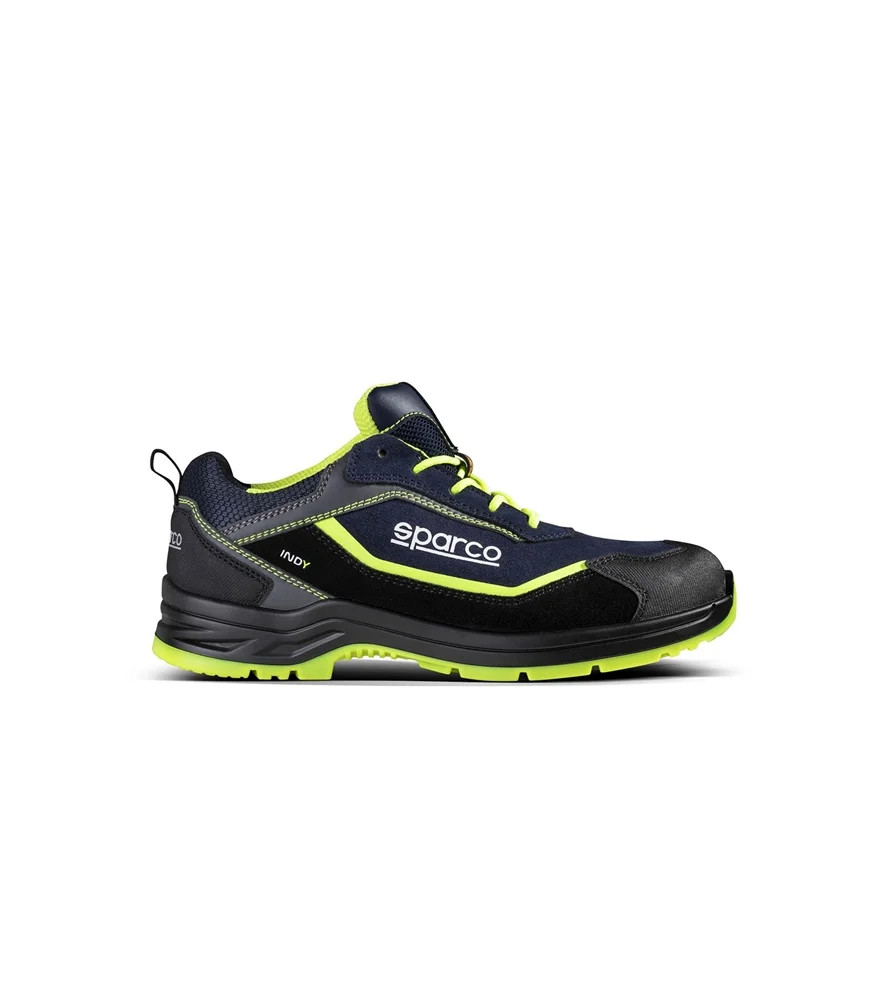 A Sparco INDY Baltimora munkavédelmi cipő felsőrésze finom vízlepergető velúr bőrből készült, orrán extra kopásálló megerősítéssel rendelkezik. A FLEXGRIP+ duplasűrűségő PU talp biztosítja az elcsúszás elleni védelmet.  Létrán történő biztonságos munkavégzésre is ajánlott.