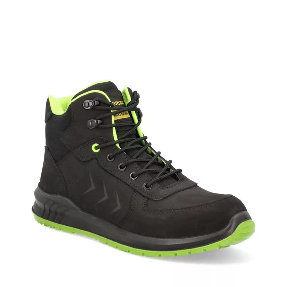 A DEMAR 6380-as, fekete–zöld színű védőbakancs masszív, S3 védelmi osztályú munkavédelmi lábbeli, amely ideális választás nehéz, megterhelő munkakörülmények között végzett feladatokhoz. A maximális biztonságot és kényelmet szem előtt tartva tervezték.
